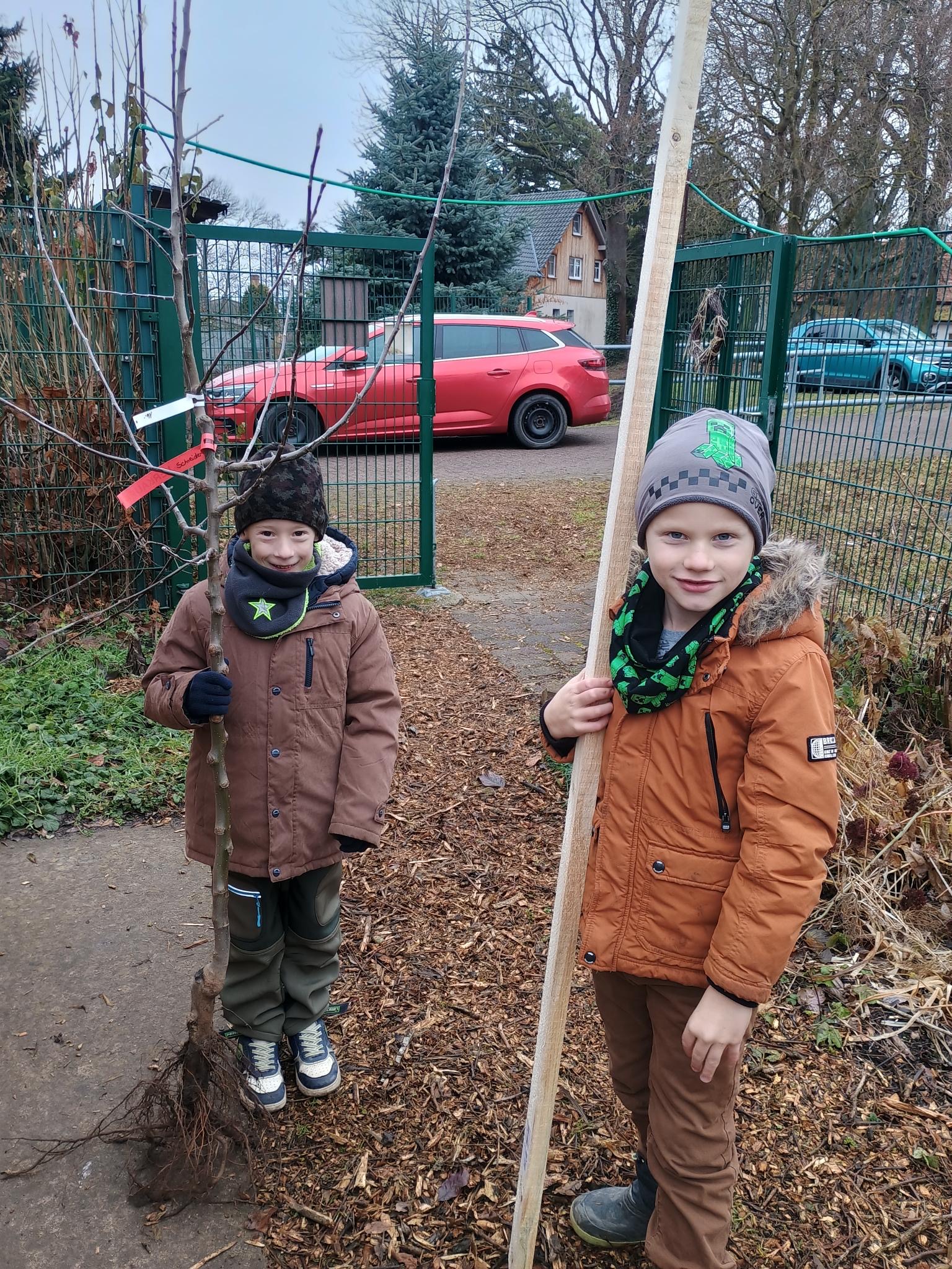 Wenn wir unseren neuen Apfelbaum gut pflegen, dürfen wir uns vielleicht schon im nächsten September auf die ersten köstlichen Äpfel freuen. 🍏✨